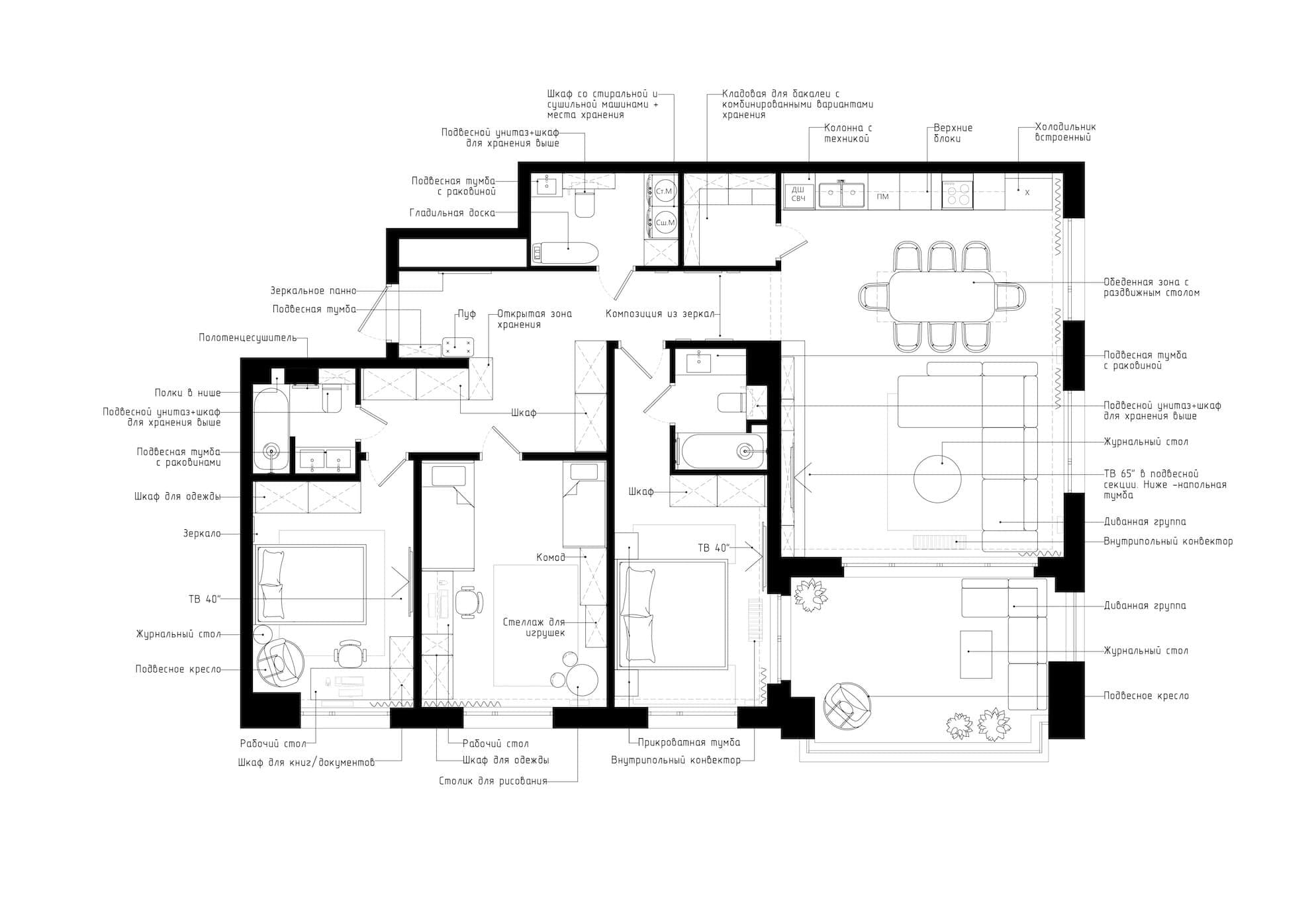 Дизайн-проект квартиры разработан в стиле современная классика. В отделке использованы оттенки бежевого цвета с использованием ярких акцентов в детской зоне. Также вся фурнитура, сантехника и светильники подобраны в золотой отделке. Изначально в квартире имелось только условное место расположение перегородок, в ходе разработки планировочного решения первоначальная планировка была доработана, с учетом сохранения влажных зон.