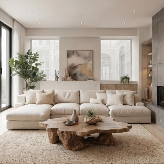 В интерьере под Москвой, где важна сдержанность и статусность, лучше начинать с тёплой, природной палитры: кремовый, песочный, овсяный, тёплый серый, глубокий терракот. На таком фоне уже «звучат» более смелые, но осмысленные цвета: приглушённая горчица, оливковый, глиняный красный, пыльная роза, глубокий индиго.